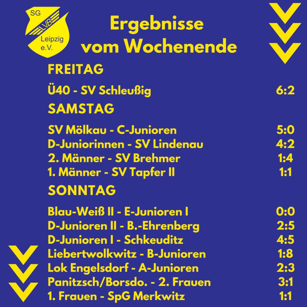 Zwei Unentschieden unserer 1. Frauen und 1. Männer sowie vier Siege der Ü40, A-, B-Junioren und der D-Juniorinnen waren die Lichtblicke des SG-Wochenendes. Das bedeutet Platz 3 für die B und sogar Platz 2 für die A. Außerdem sprangen die 1. Männer auf einen Aufstiegsplatz – mega! Die 1. Frauen werden ebenso ansprechend auf Platz 3 geführt. Das sind definitiv top Zwischenergebnisse der Gelb-Blauen! 🙂