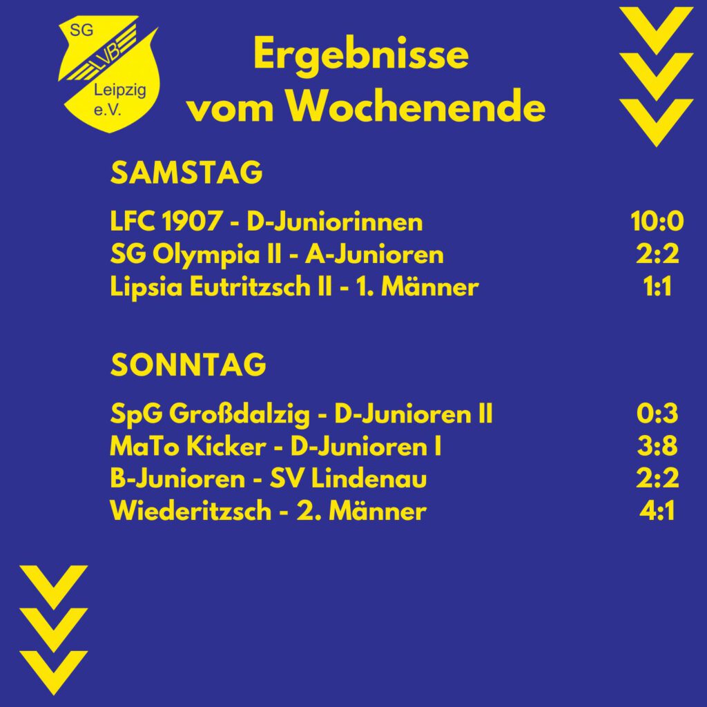 Gleich drei Unentschieden bei sieben Partien gab’s von unsere SG-Teams. Außerdem auffällig: Beide D-Junioren-Mannschaften gewannen und scheinen immer besser in Form zu kommen. Hingegen taumeln die 2. Männer weiter und bleiben Tabellenletzter – Kopf hoch!