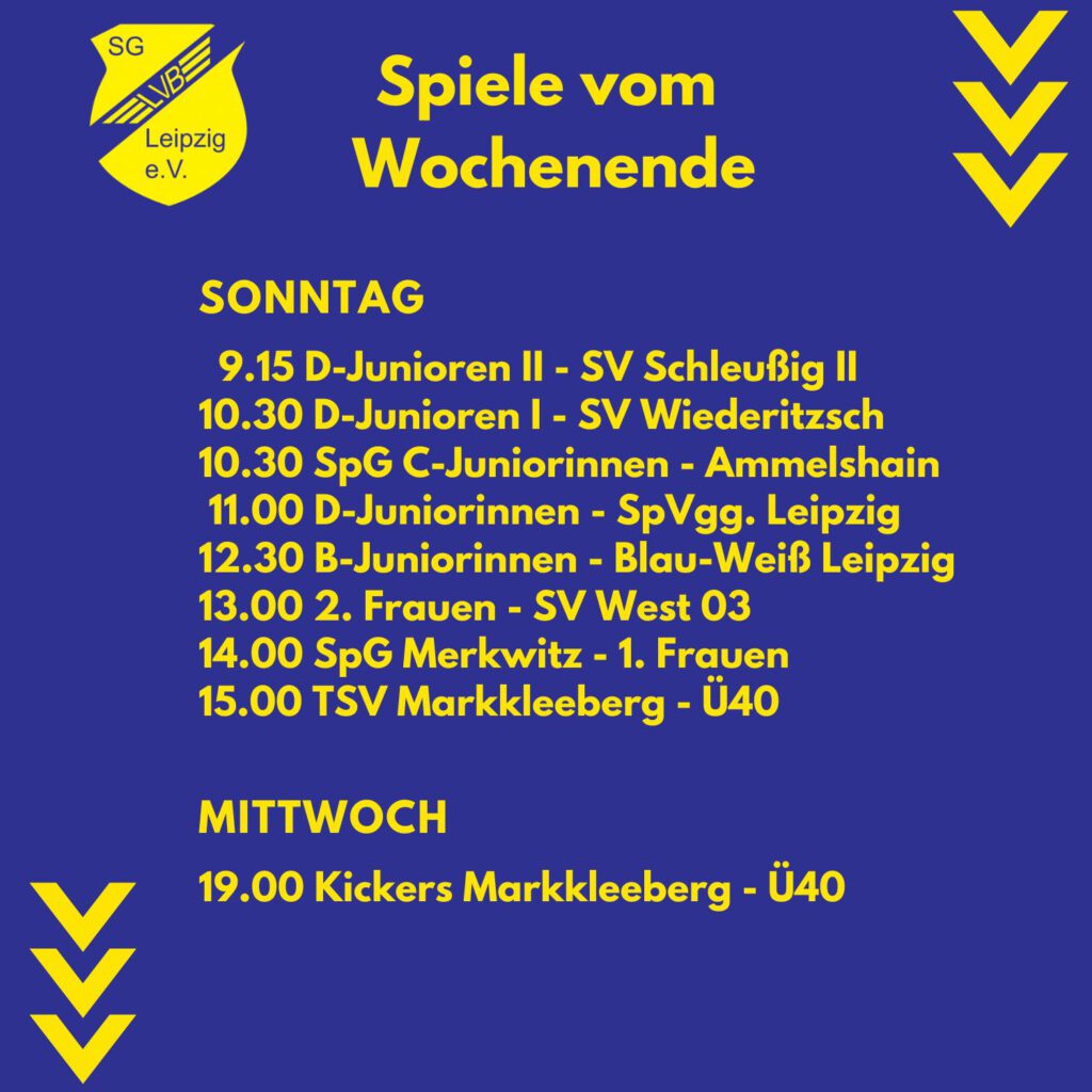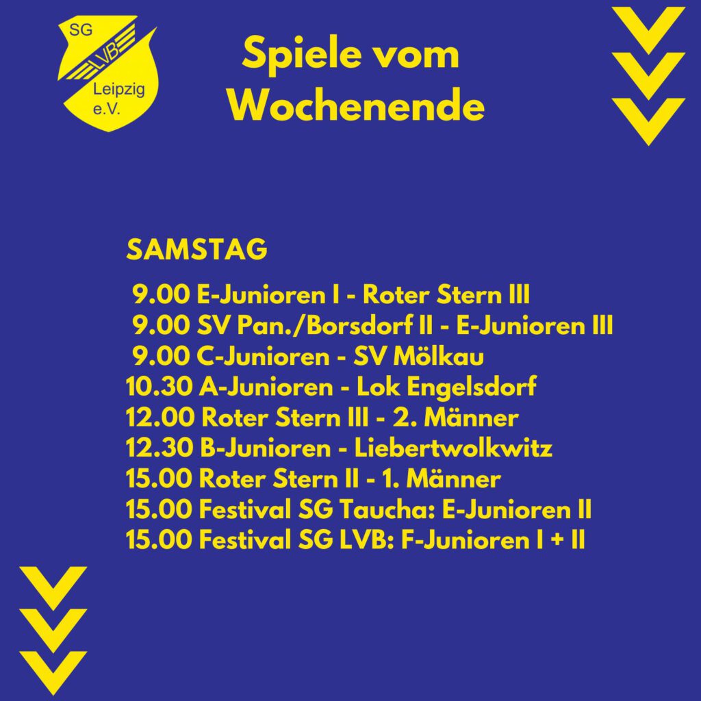 Einiges los bei der SG an diesem Wochenende nach der kleinen Oster-Pause. Vor allem viele Heimspiele haben wir vor der Brust! Das Wetter soll sich passend dazu auch von der schönen Seite zeigen. Im Vordergrund stehen dabei die Derbys gegen Roter Stern! Erst beackern die E-Junioren die Sterne, danach die 2. und 1. Männer – da müssen Derby-Dreier her! 🙂